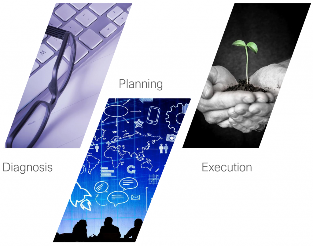 - Professional: In-depth diagnosis, detailed planning and action prioritization model in 12 weeks. Perfect for companies that need a complete analysis and a structured action plan.